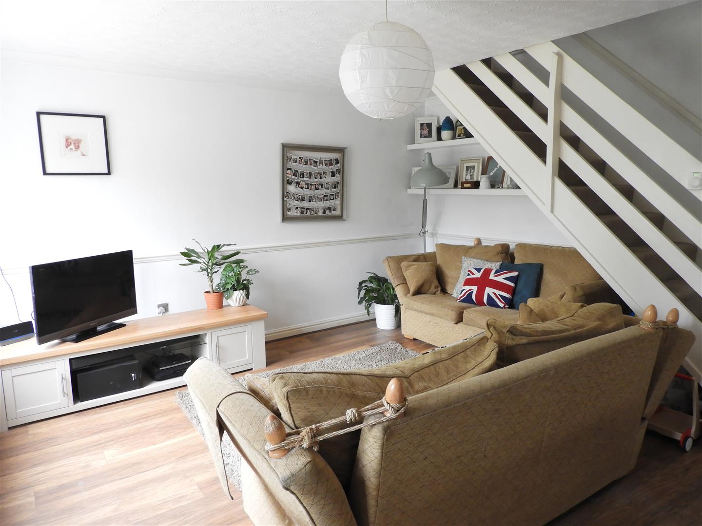 Spacious living room with window to front with fitted blinds, stairs to first floor, radiator