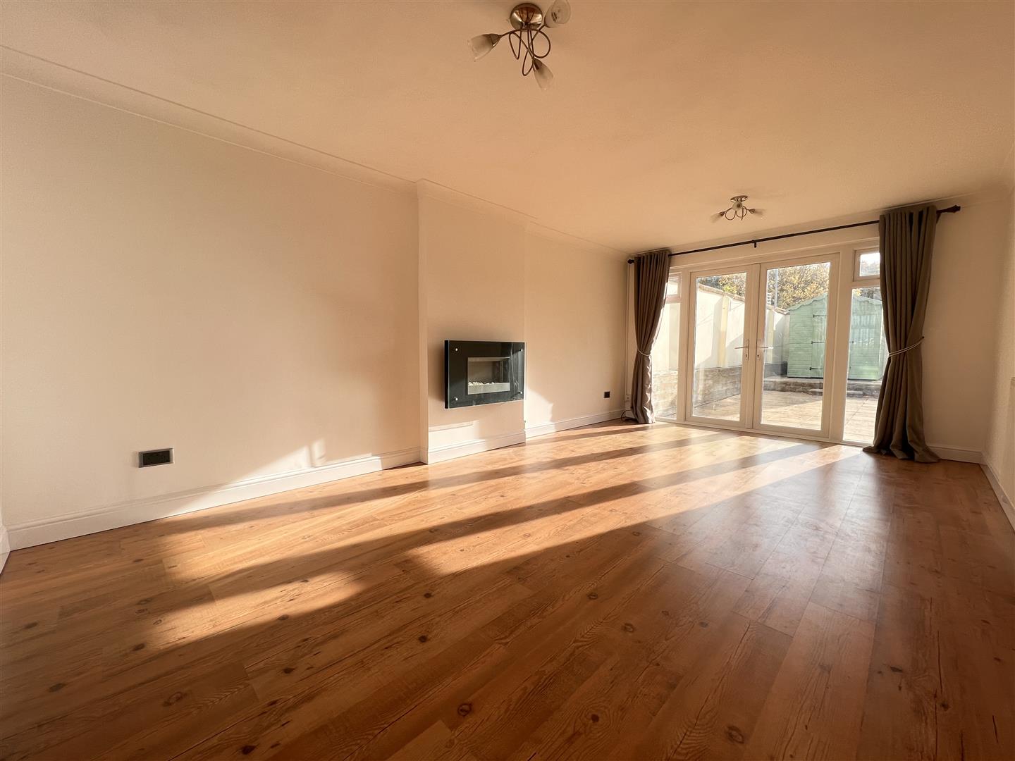 uPVC double glazed patio doors to garden, large radiator, feature electric wall mounted fire, laminate floor.
