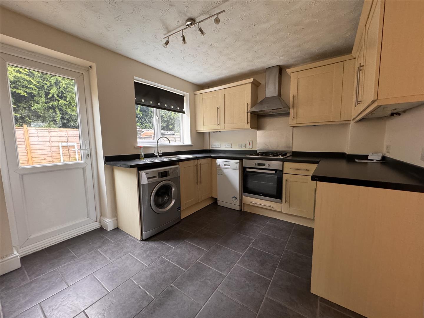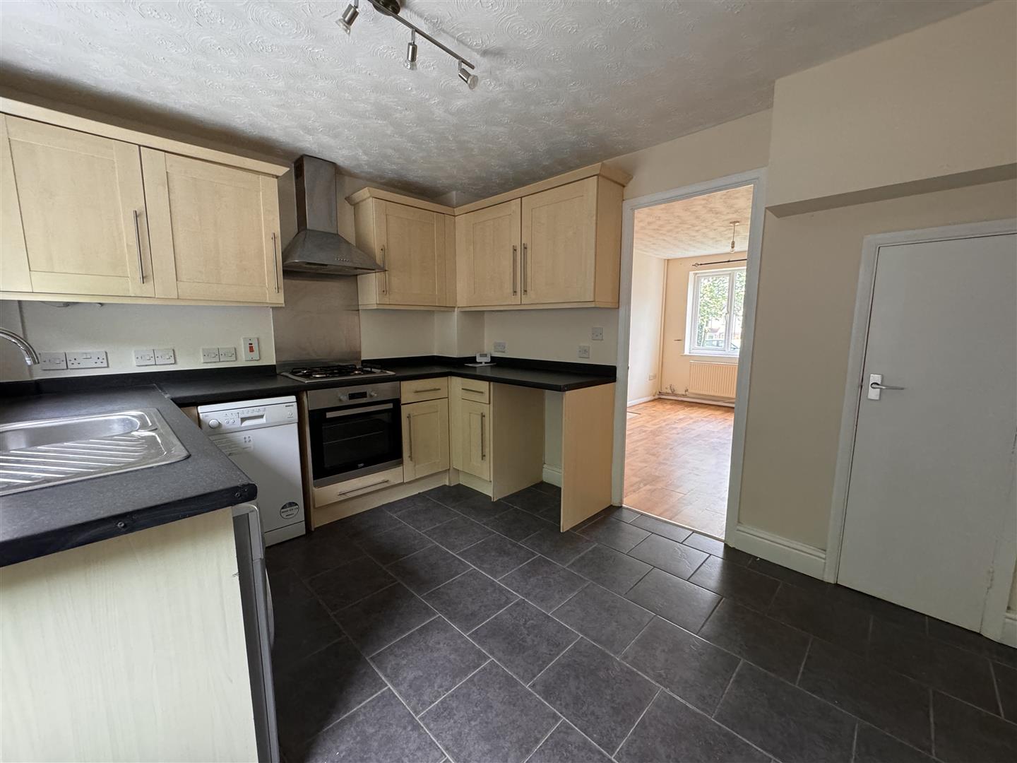 uPVC double glazed window and half glazed uPVC door to rear aspect. A modern fitted kitchen with a selection of cream units at both eye and base level, matching rolled top work tops and part tiled walls, integrated gas hob with electric oven under and extractor over, one and a half bowl stainless steel sink unit with mixer tap over, space and plumbing for washing machine and dishwasher, space for fridge freezer and tumble dryer, under stairs cupboard, radiator. There is enough space for a family size dining table and chairs.