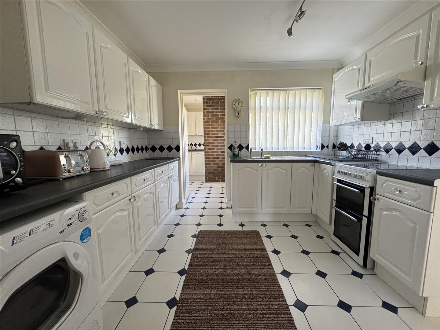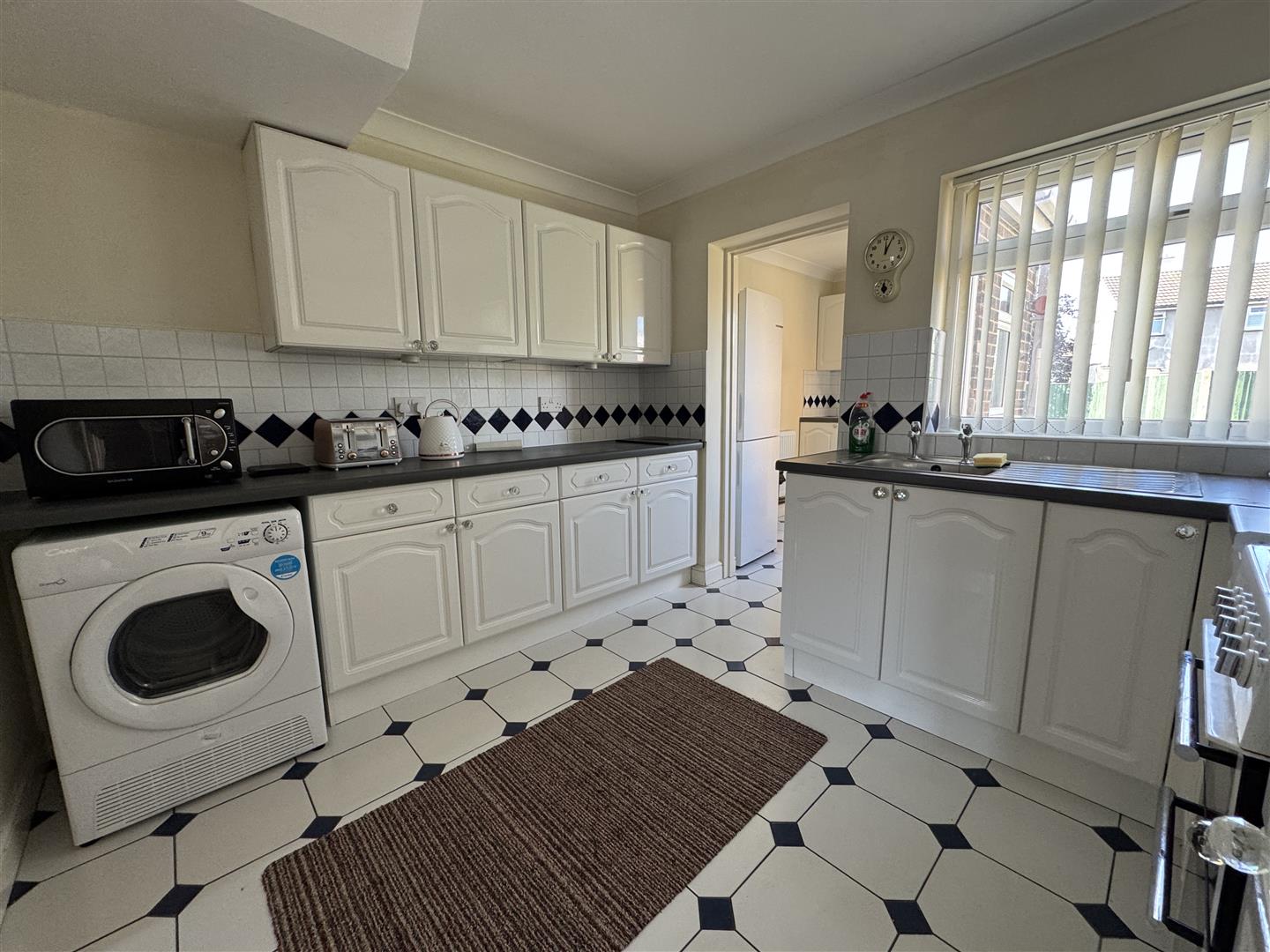 uPVC door to rear garden, fridge freezer, cupboards, washing machine, wash basin, window to side
