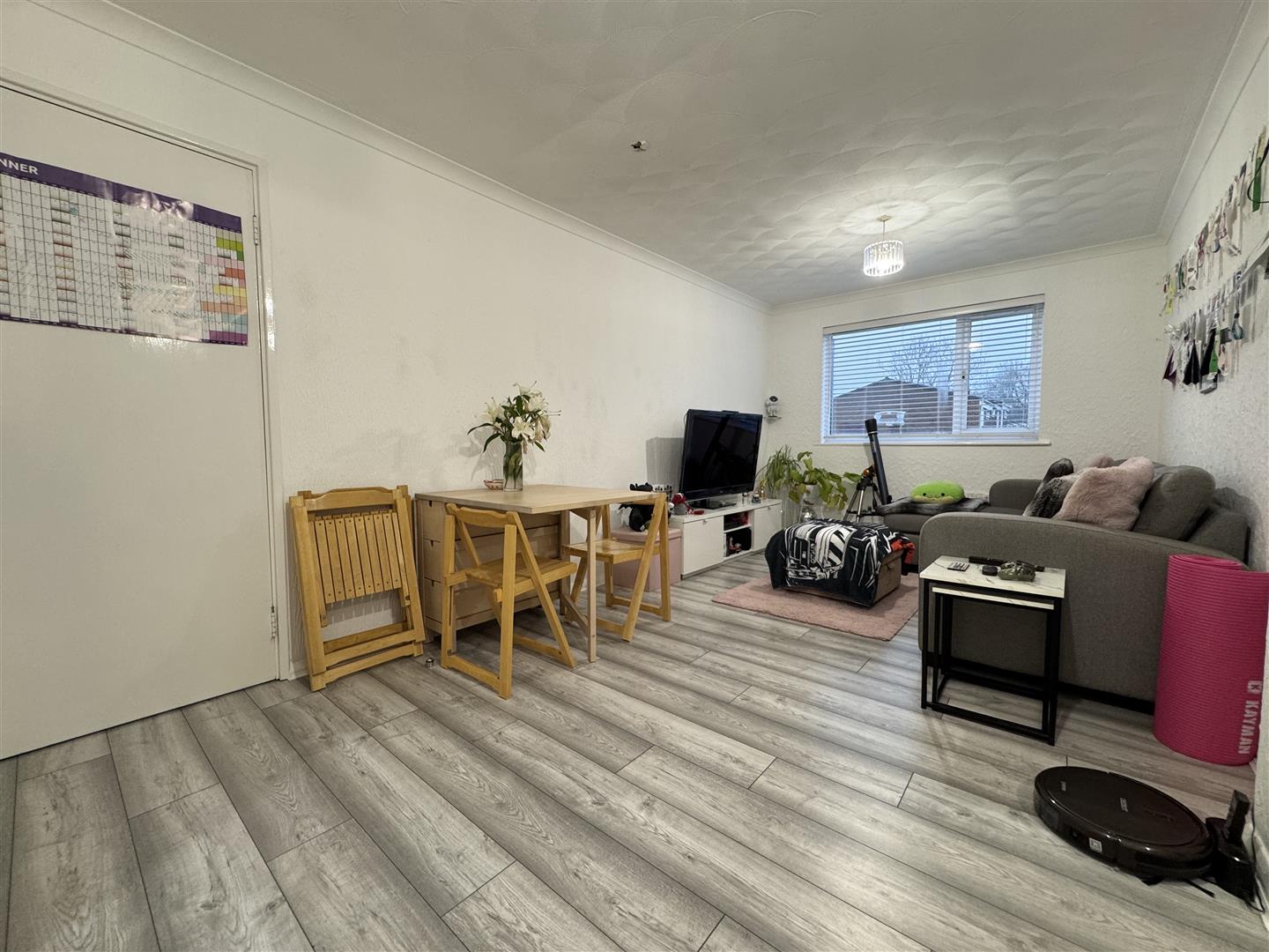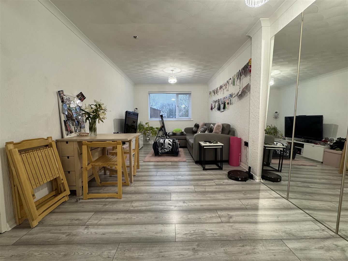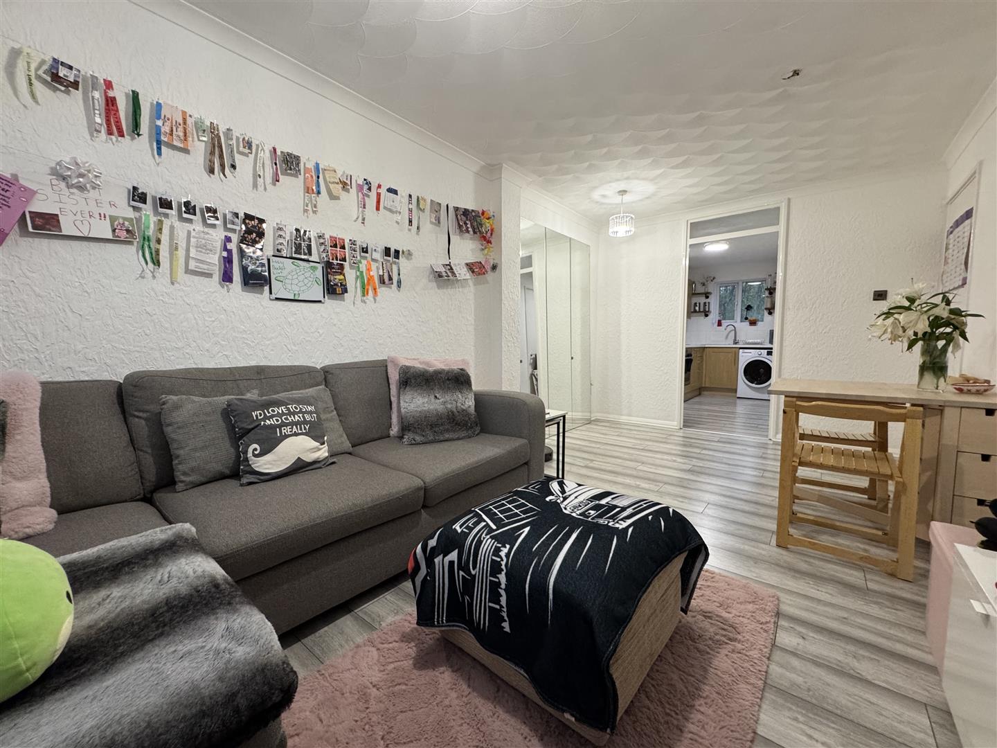 Window to side aspect, wall mounted heater, archway to kitchen