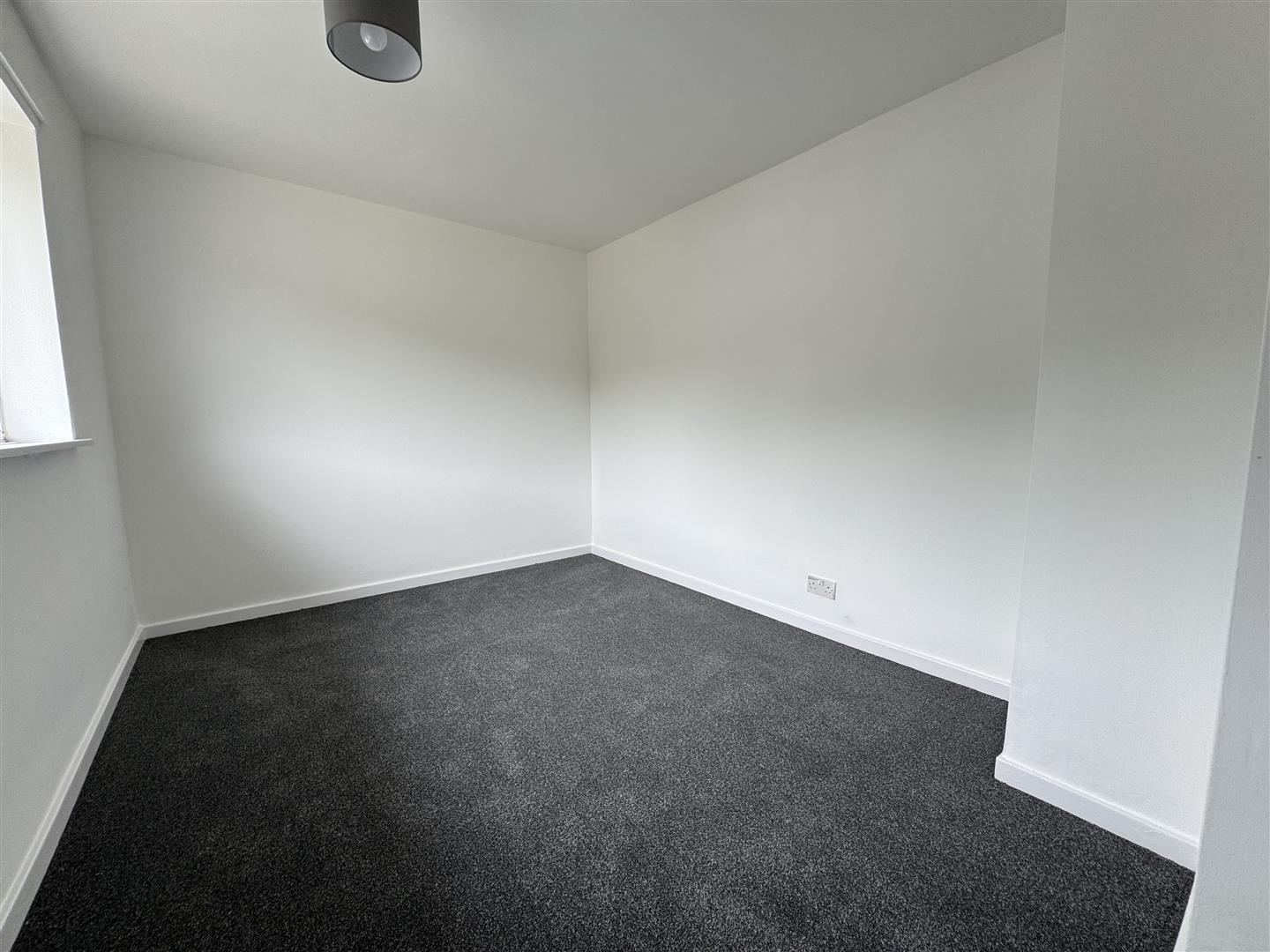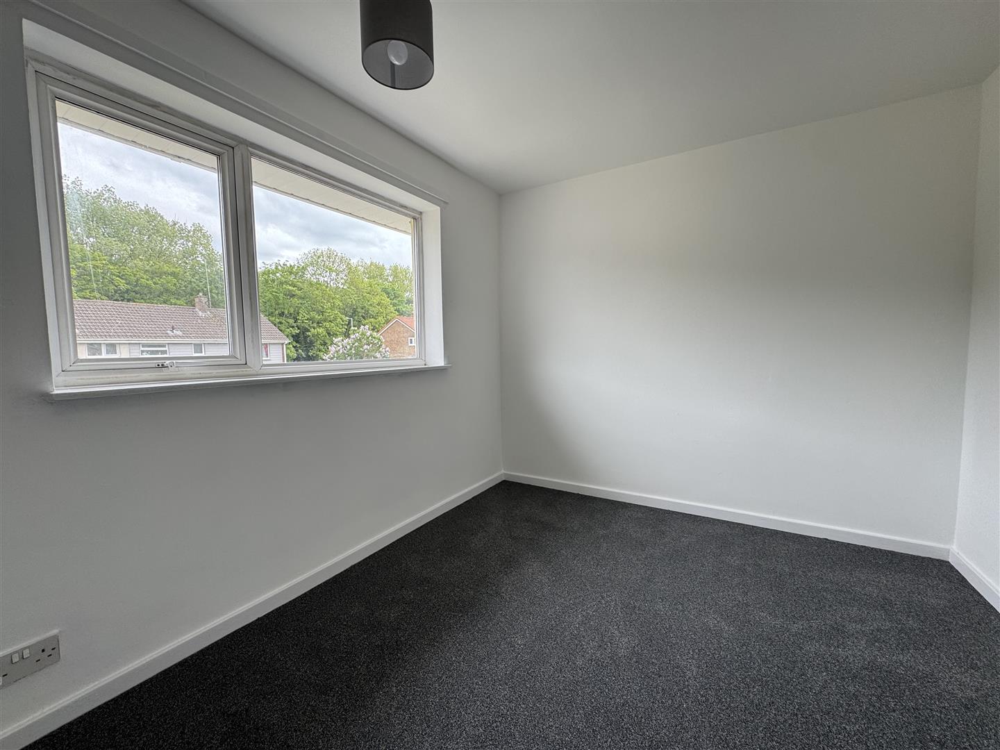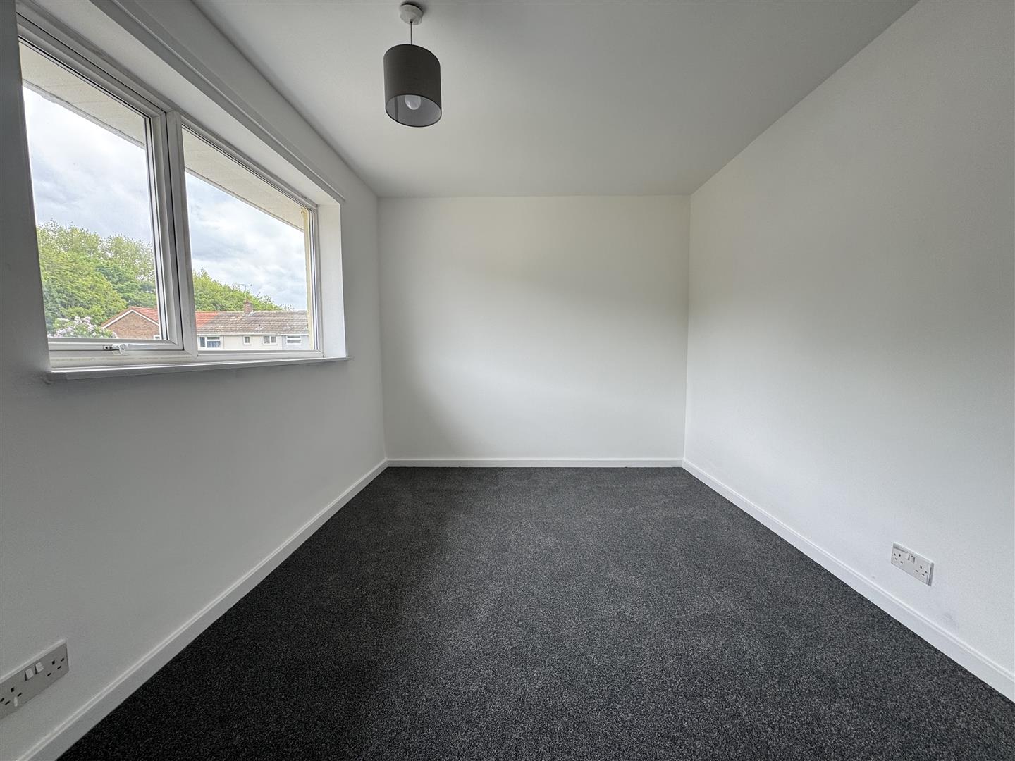 uPVC window to front aspect, wall mounted fuse box.