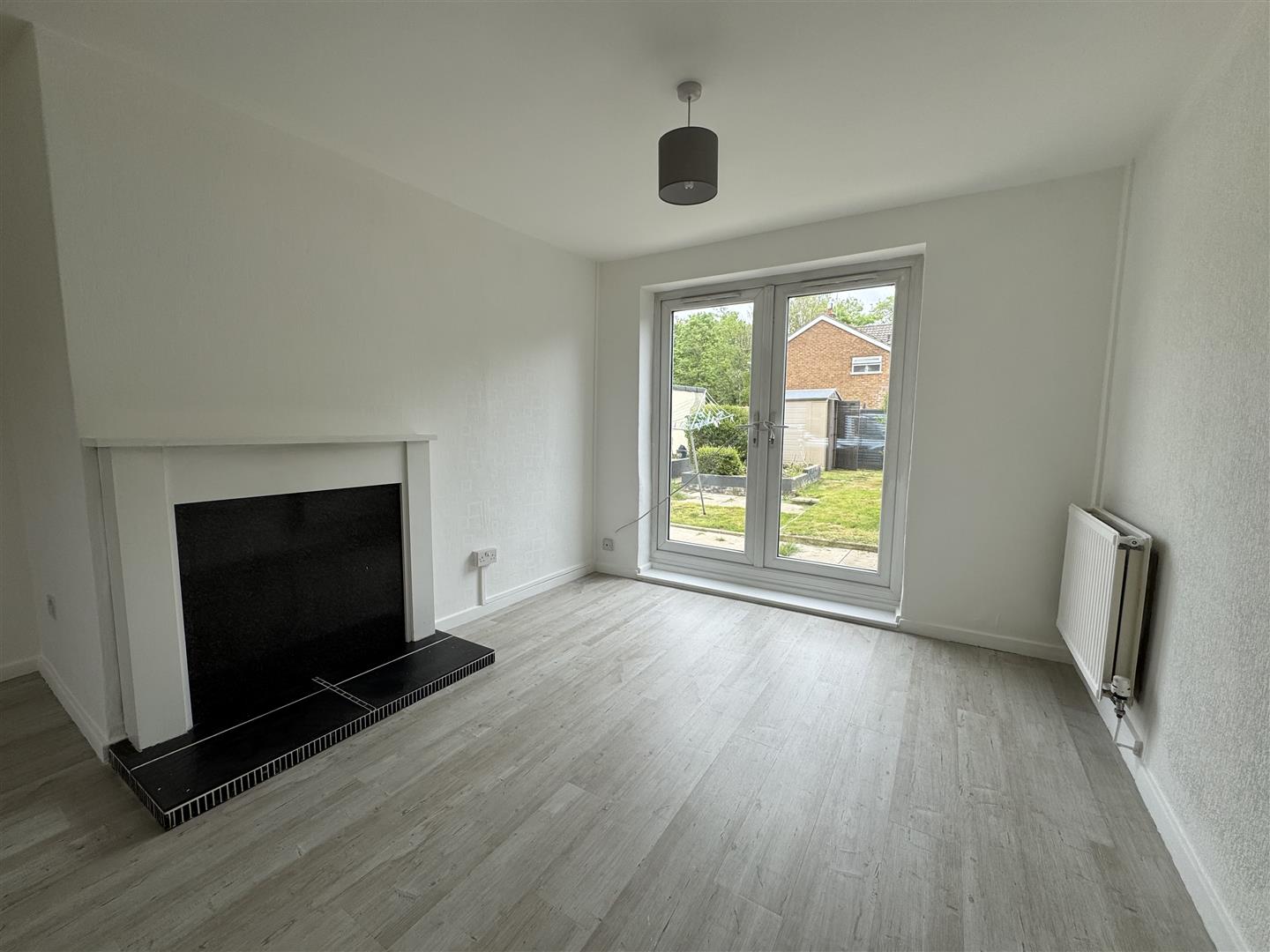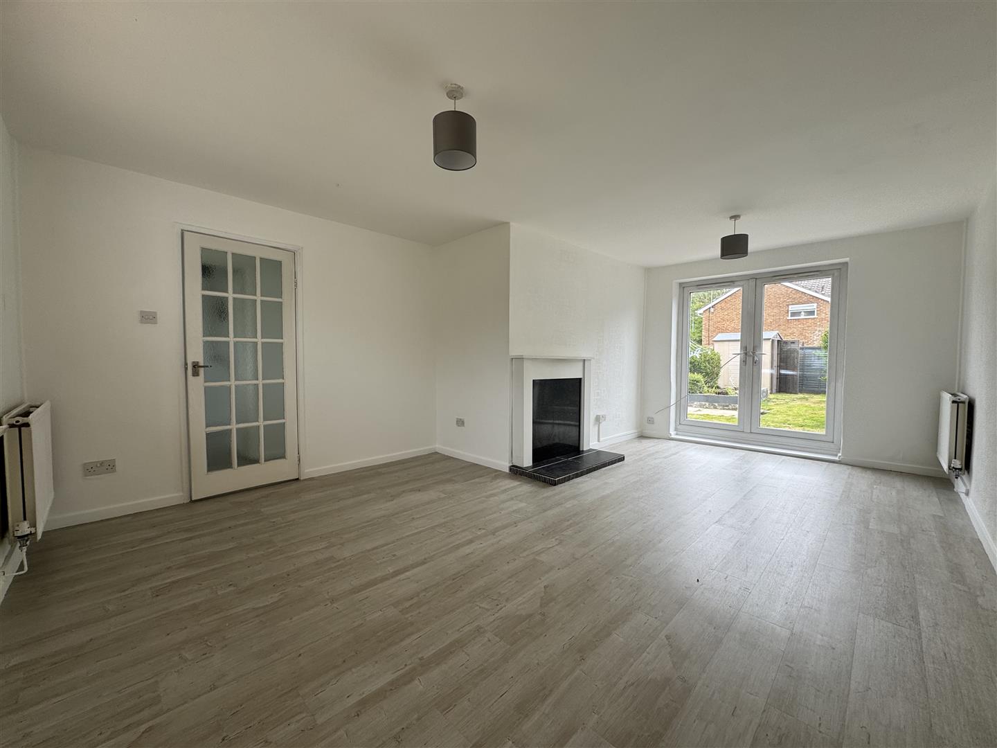 uPVC window to front aspect plus uPVC patio doors to the garden, feature fire place, two radiators, laminate flooring.