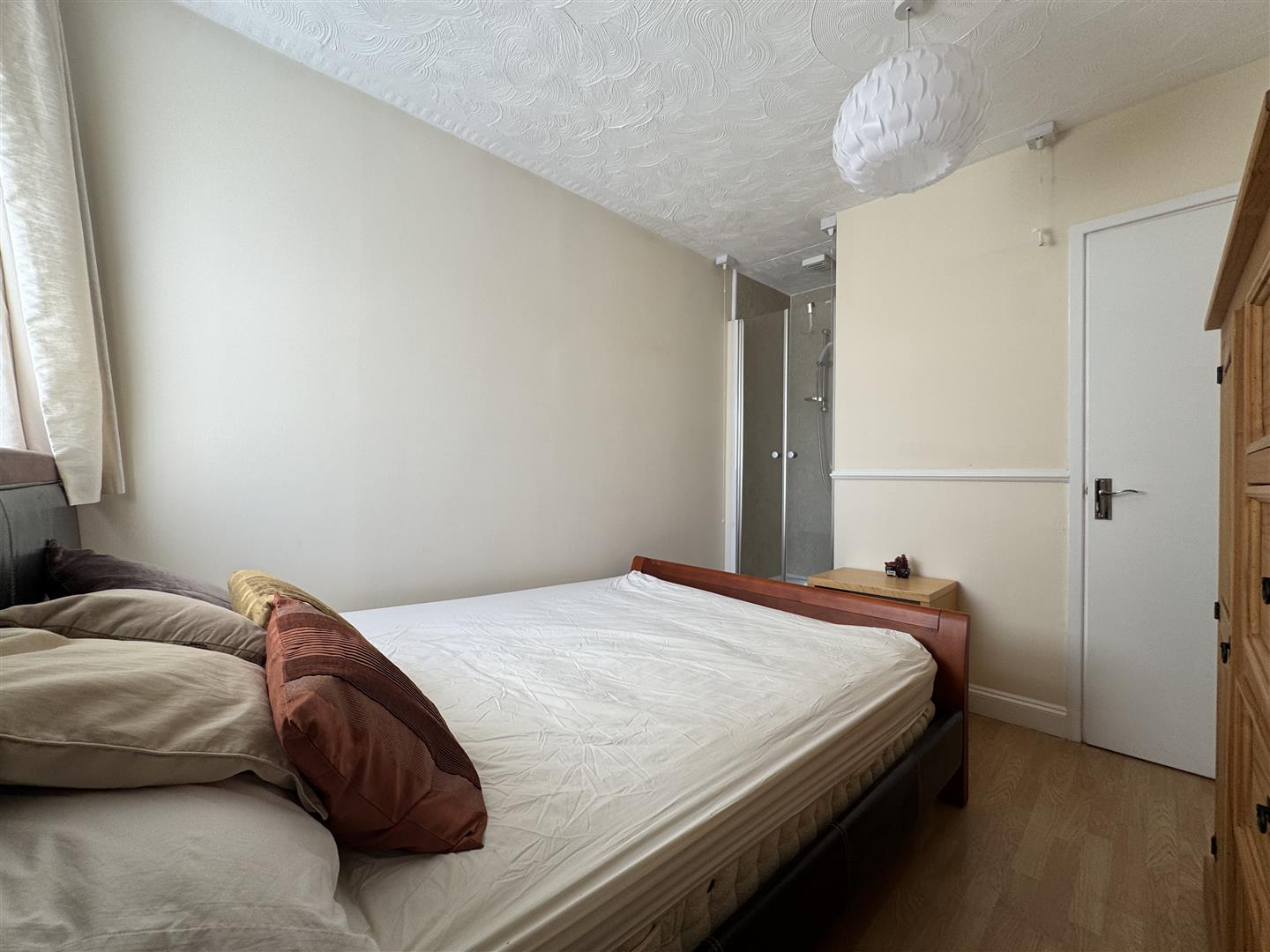 Double bed, shower cubicle, window to rear